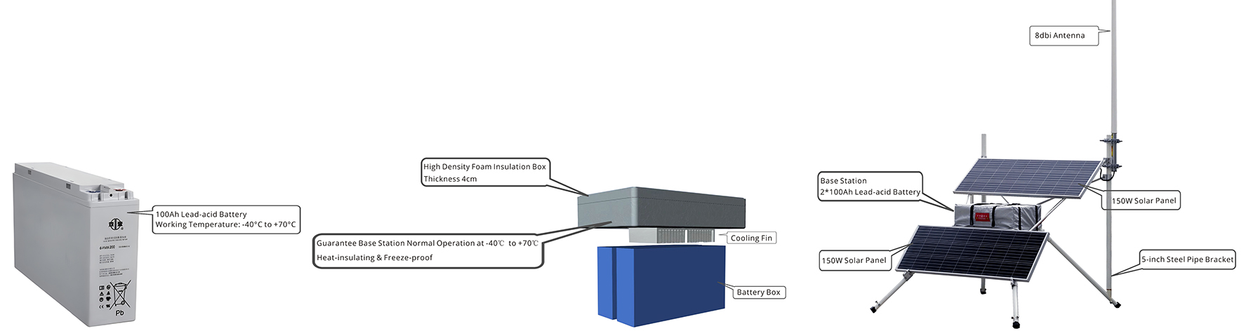 ● Stacja bazowa BL8 jest wyposażona w obudowę izolacyjną z pianki o wysokiej gęstości o grubości 4 cm, która zapewnia izolację cieplną i jest odporna na mróz. Nie tylko rozwiązuje to problem wysokiej temperatury i narażenia na działanie promieni słonecznych, ale także zapewnia normalną pracę BL8 w środowisku o temperaturze od -40℃ do +70℃.