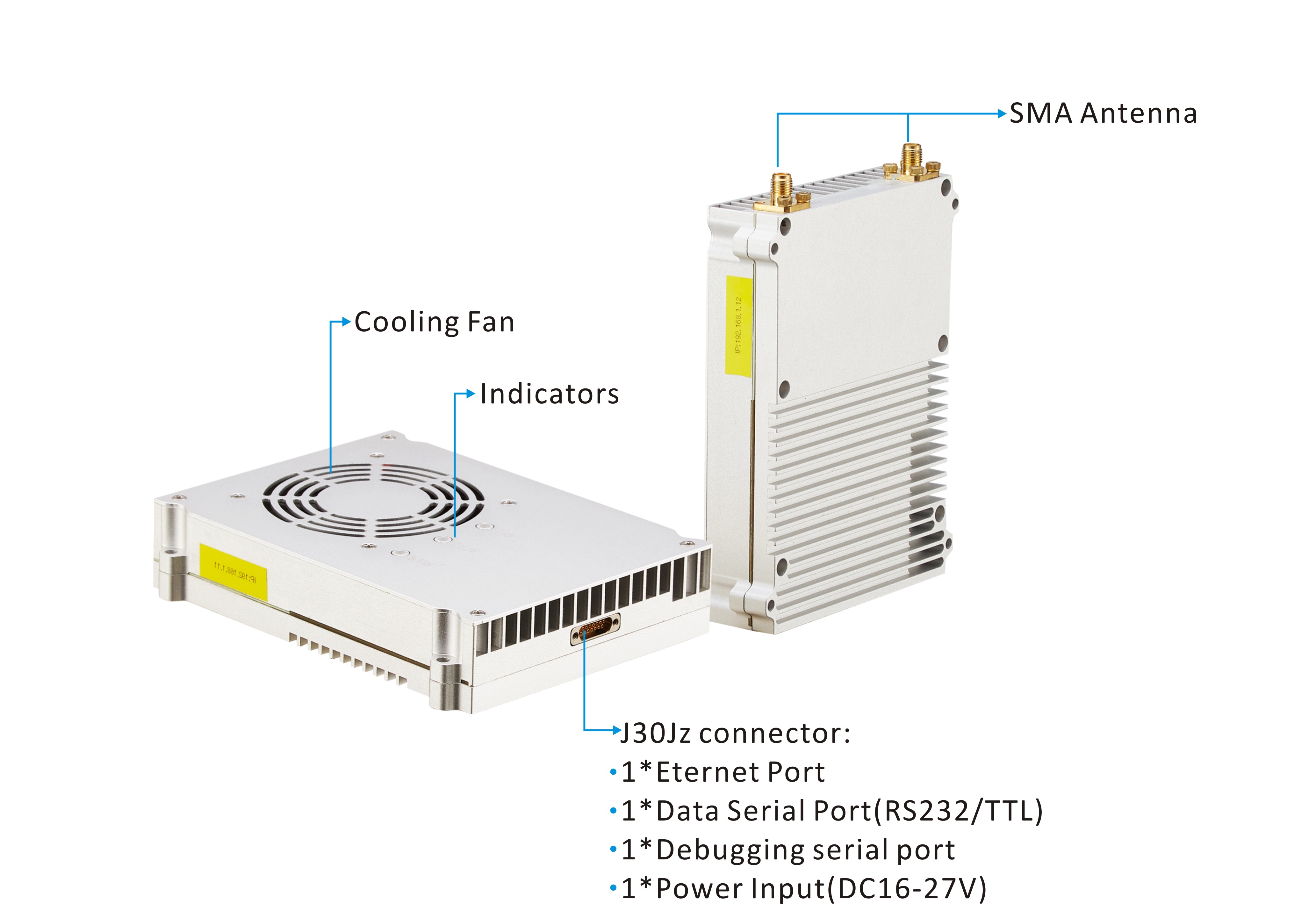 J30 Aviation Plug Interface: Facilitates multiple serial port and Ethernet communication connections
