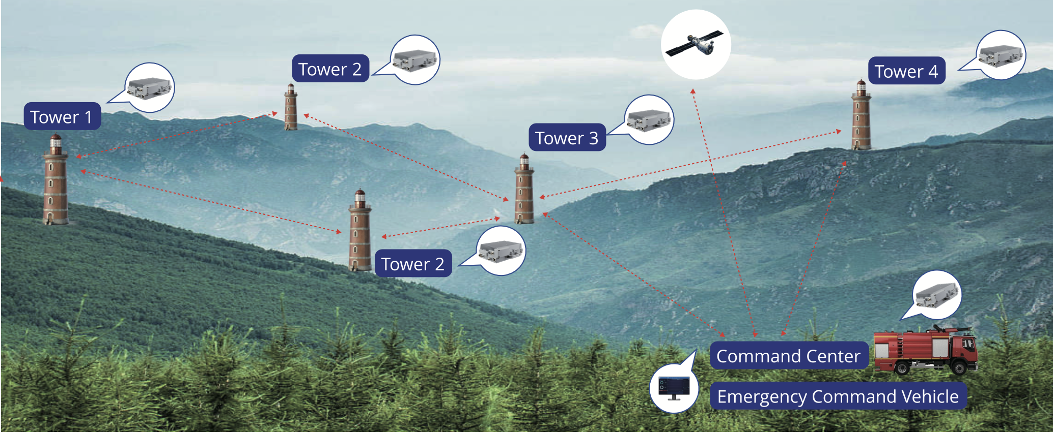 The Patron-G20 integrated base station can be mounted on fixed objects such as base station towers. Through a certain height, it can effectively expand the coverage range between self-organized networks and solve problems such as long-distance signal transmission. The forest fire prevention emergency linkage command system uses the base station to realize the coverage and monitoring of the forest fire prevention network. Once an abnormal situation occurs in the forest, it can be remotely commanded and dispatched to the scene immediately.