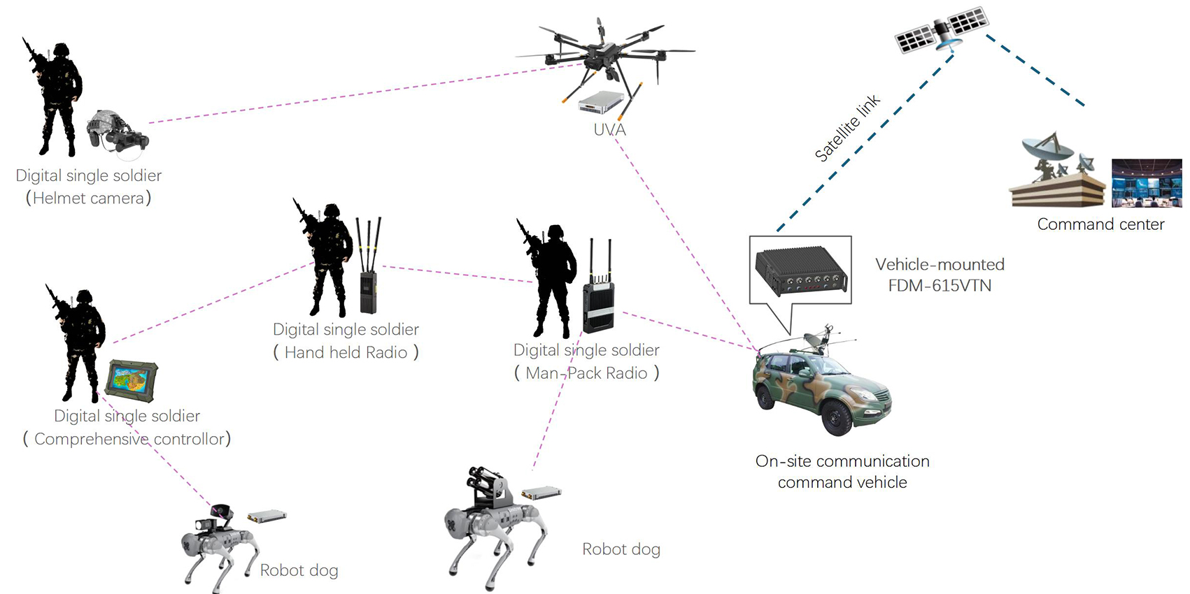 FD-7805HS is Mobile Ad-hoc Networking (MANET) smart radio equipped with 2x2 MIMO technology and supporting 64-node networks. It integrates GPS positioning, native video encoding/decoding, and PTT audio capabilities – enabling your team to share a unified operational picture in real time.