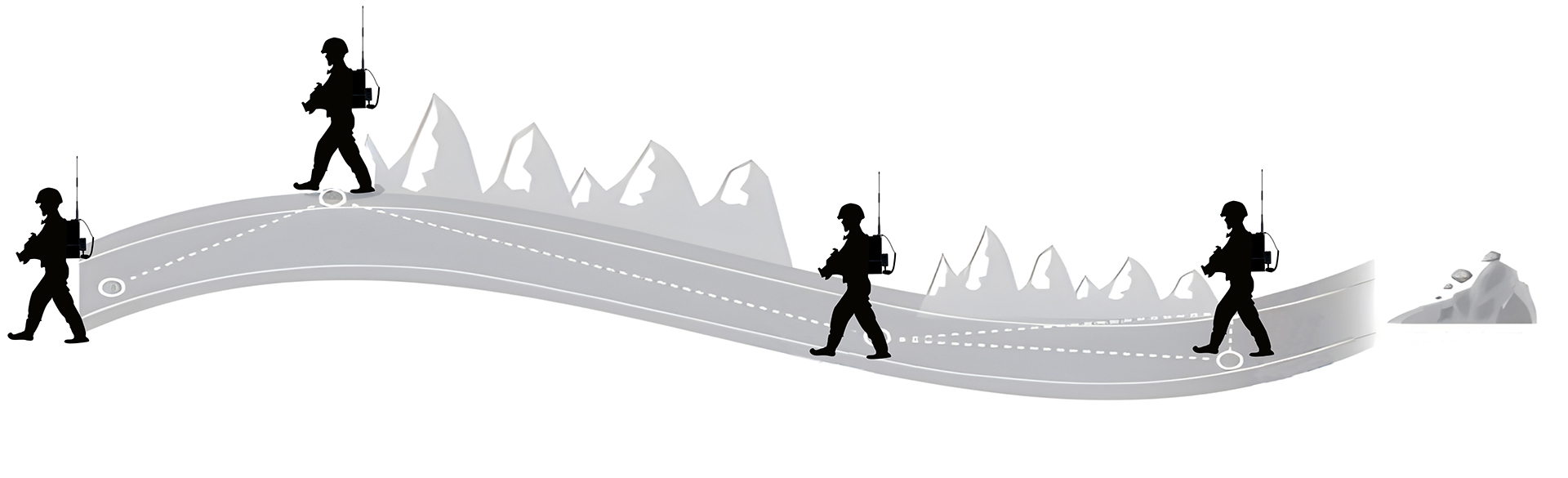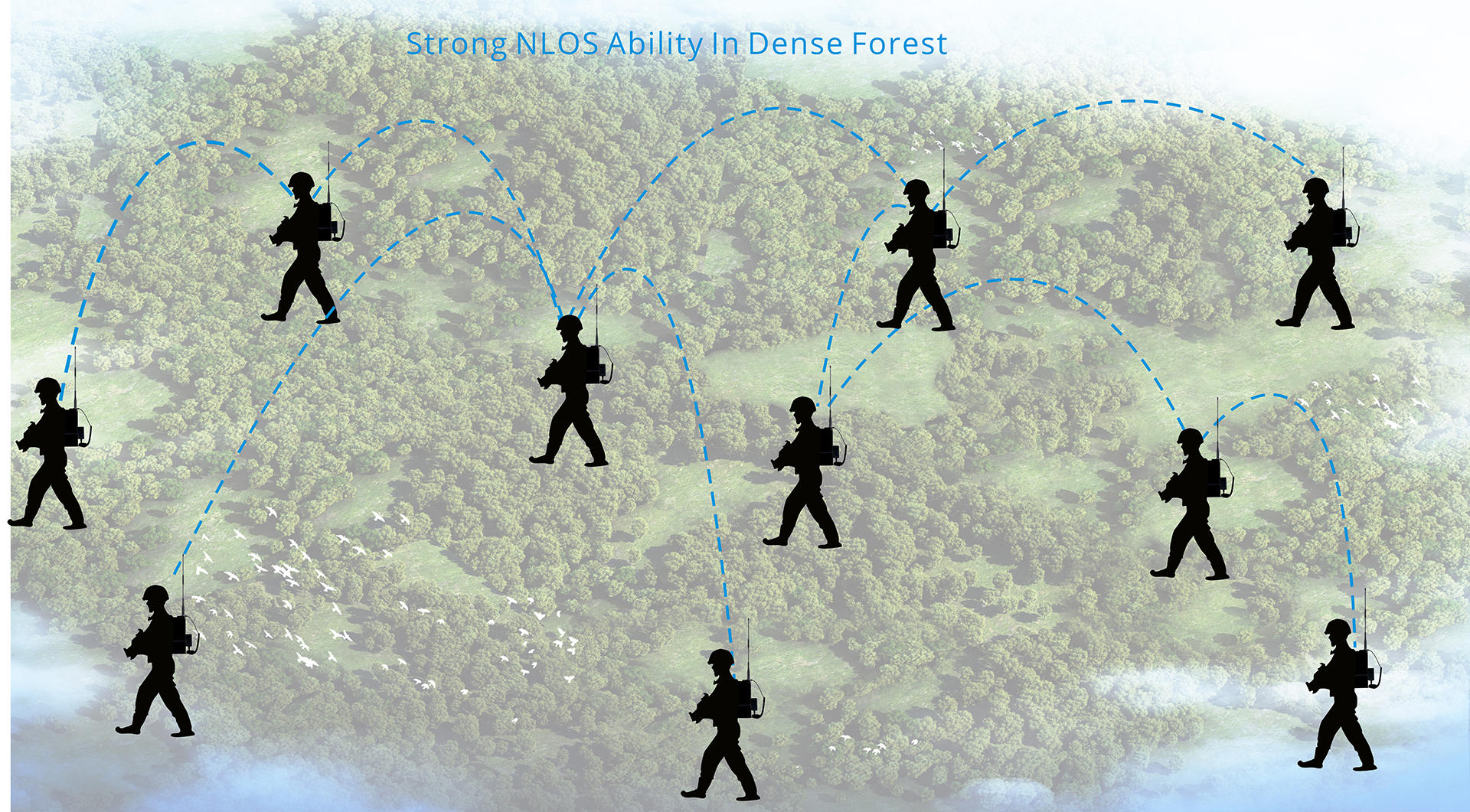 ●All the IWAVE Defensor series--narrowband MESH PTT radios and base stations and command center can smoothly communicate with each other to build a long distance narrowband self-grouping and multi-hop tactical communication system.